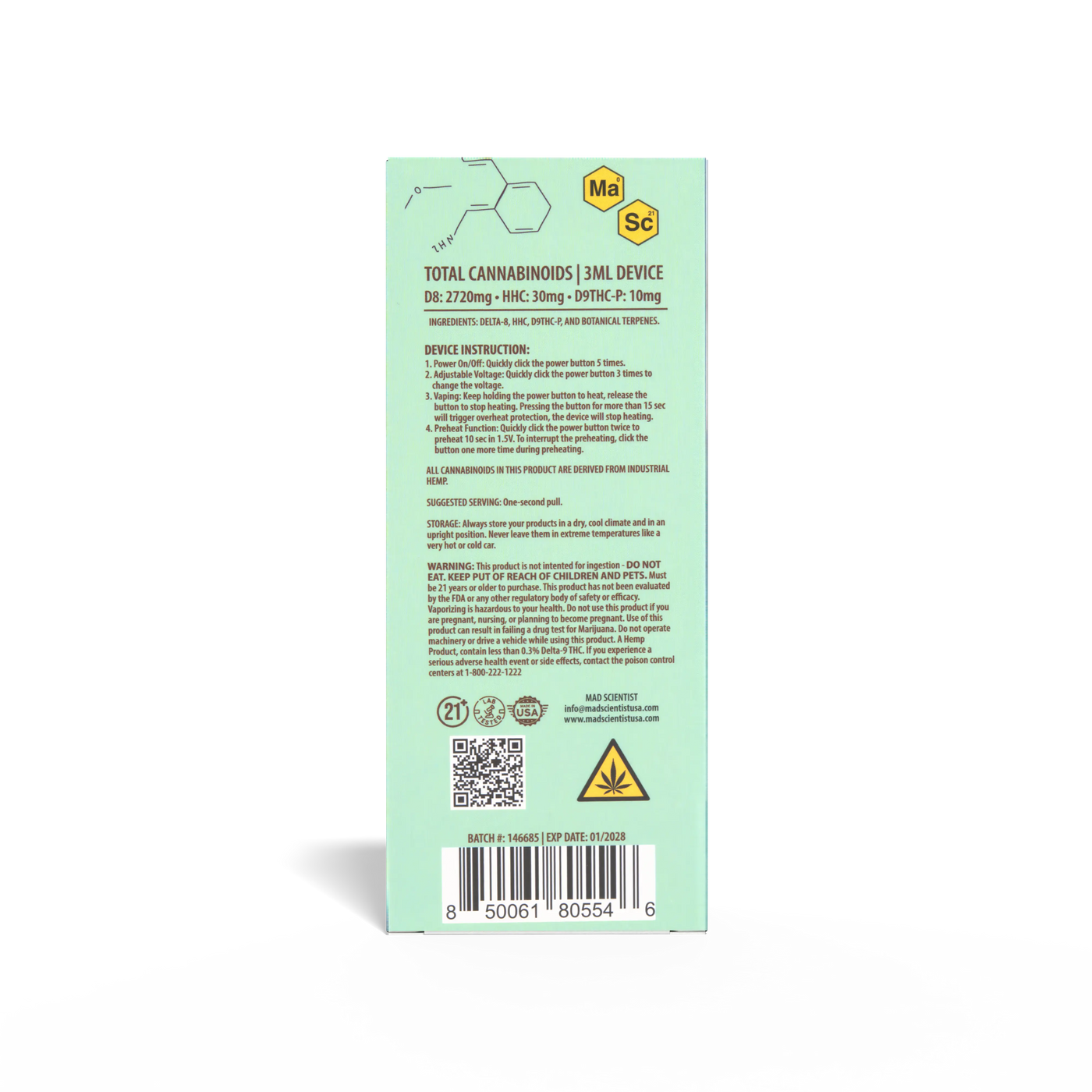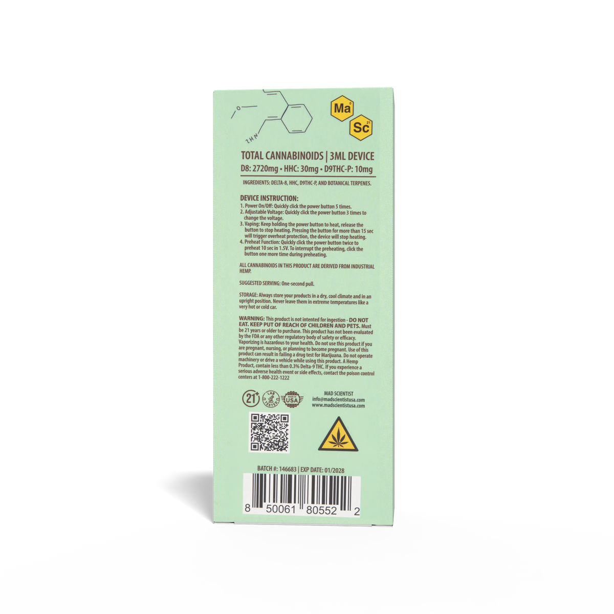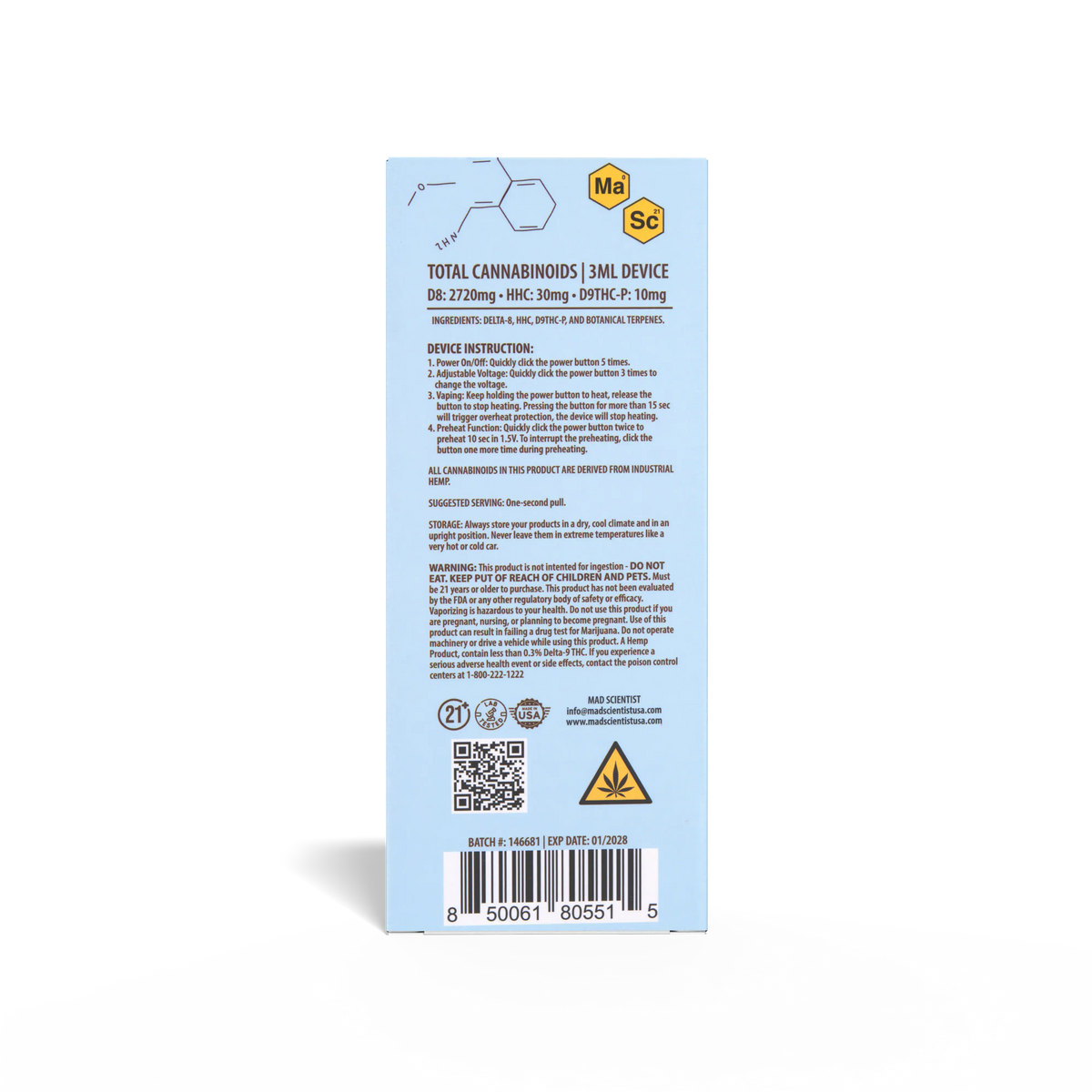 Unleash the genius within with the Mad Scientist Blueberry Diesel Disposable. This isn't just a vape; it's a breakthrough experiment in harmony, meticulously crafted with a high-potency THC-P formula.