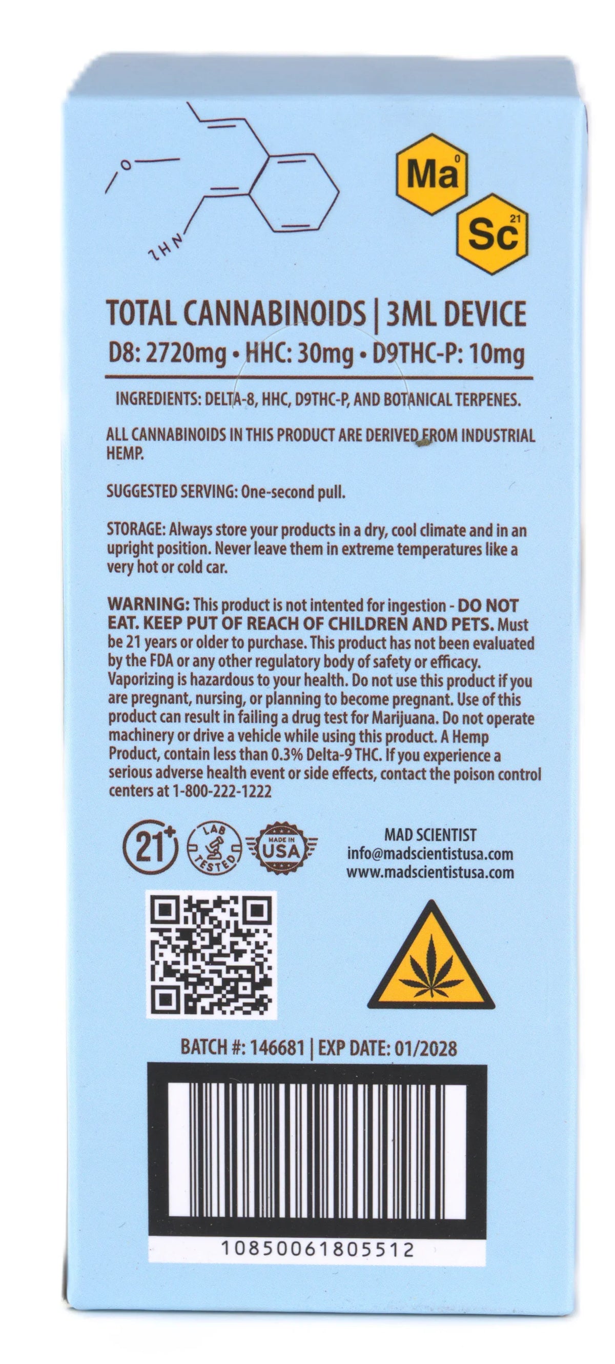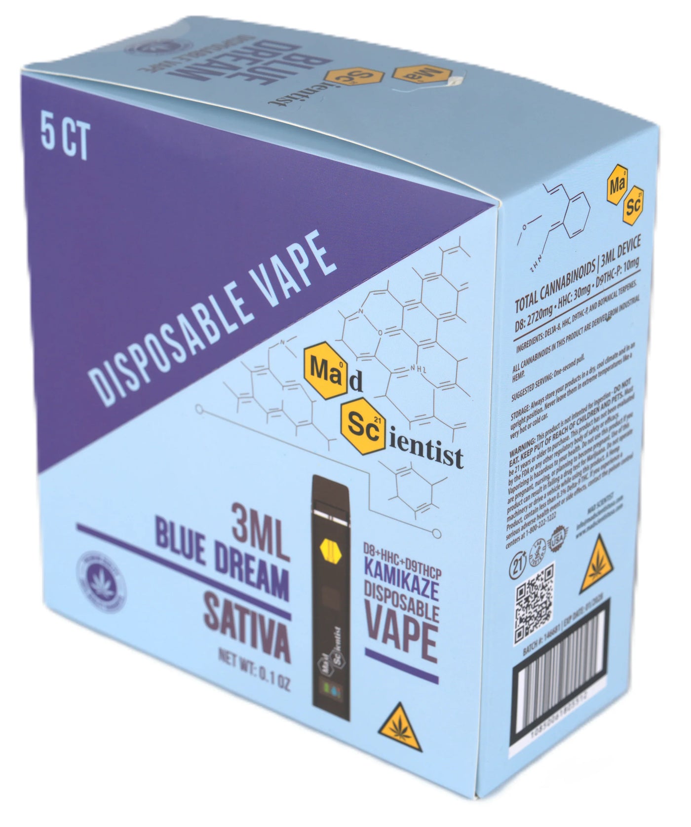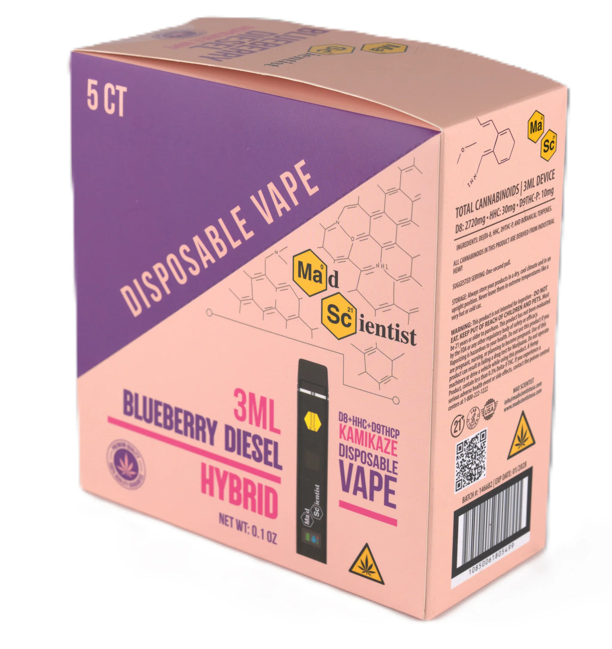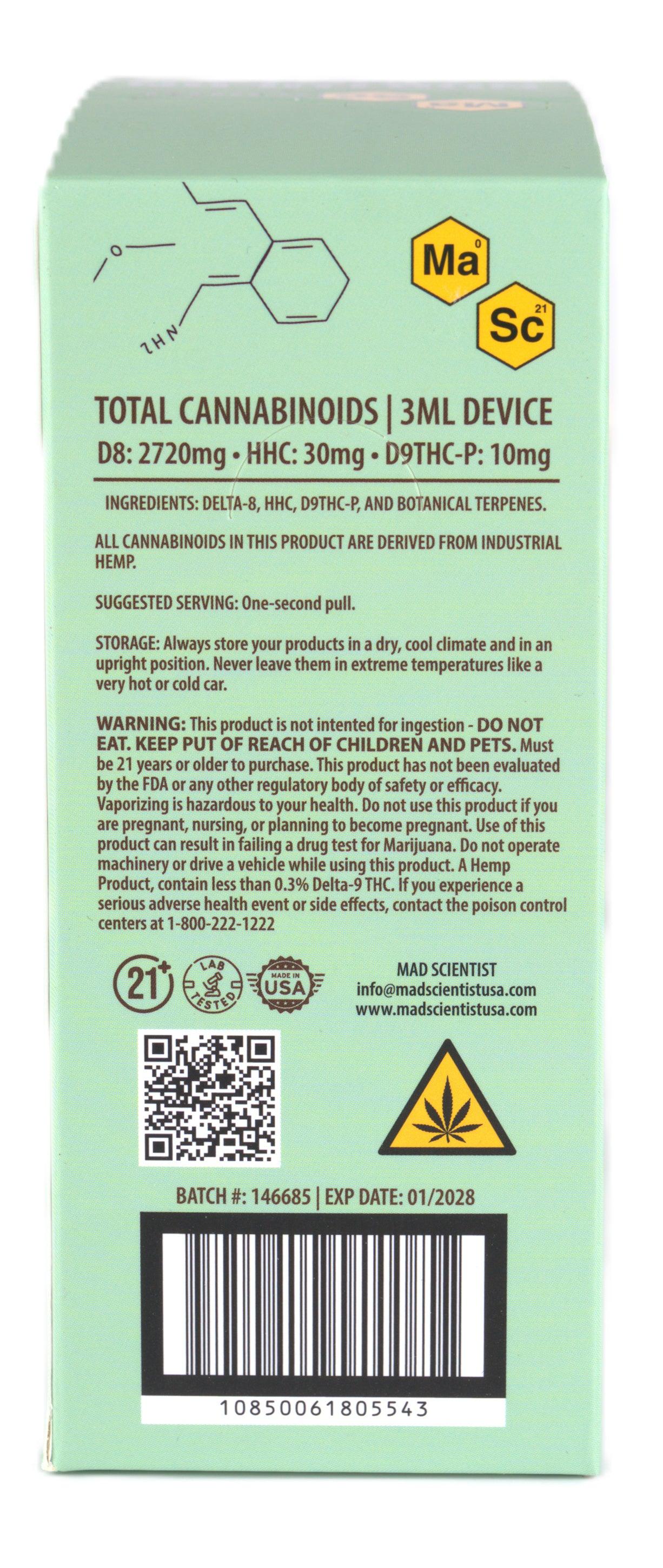 MAD SCIENTIST DISPOSABLE 3000MG - Blueberry Diesel / Hybrid / 5.25 x 2.37 x 5.56
