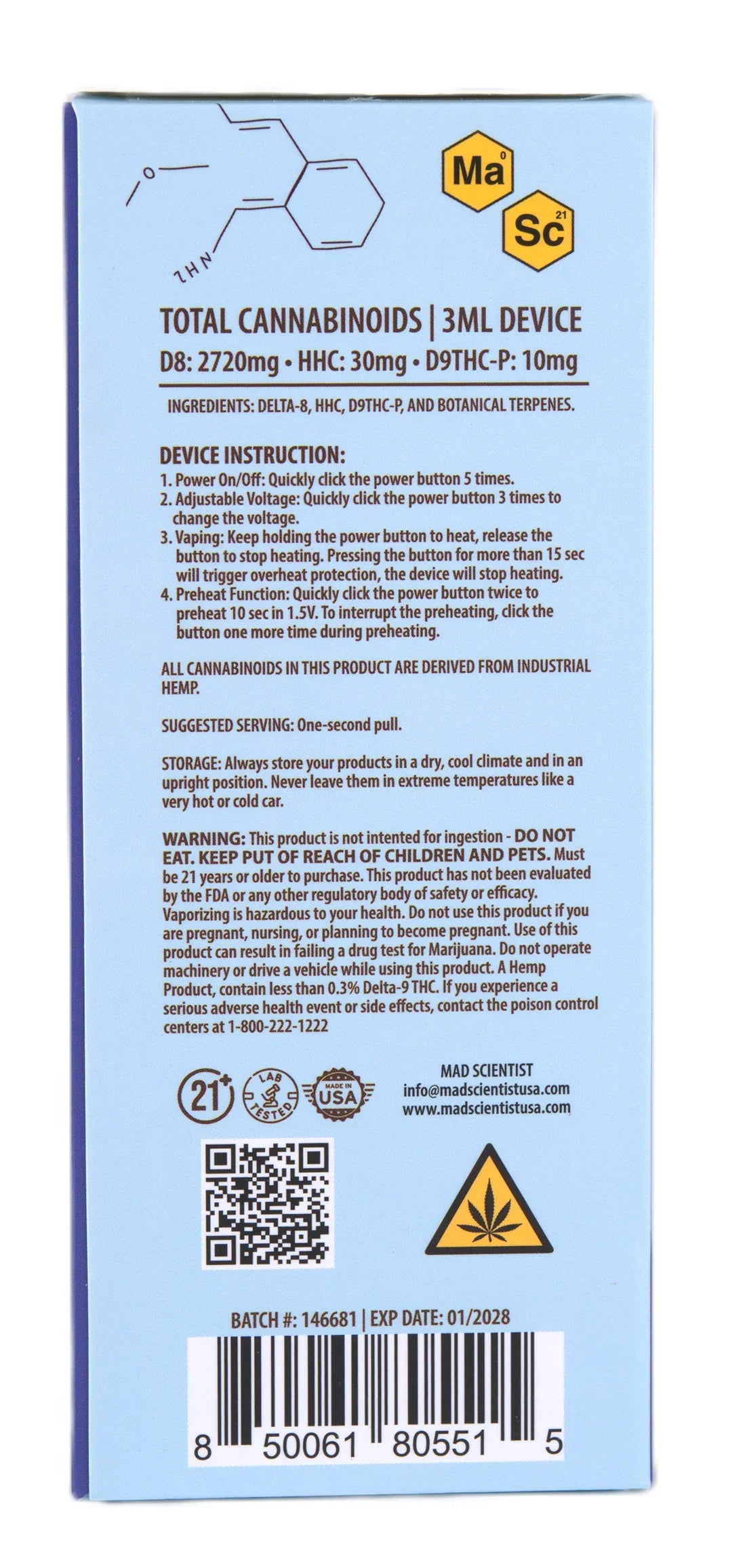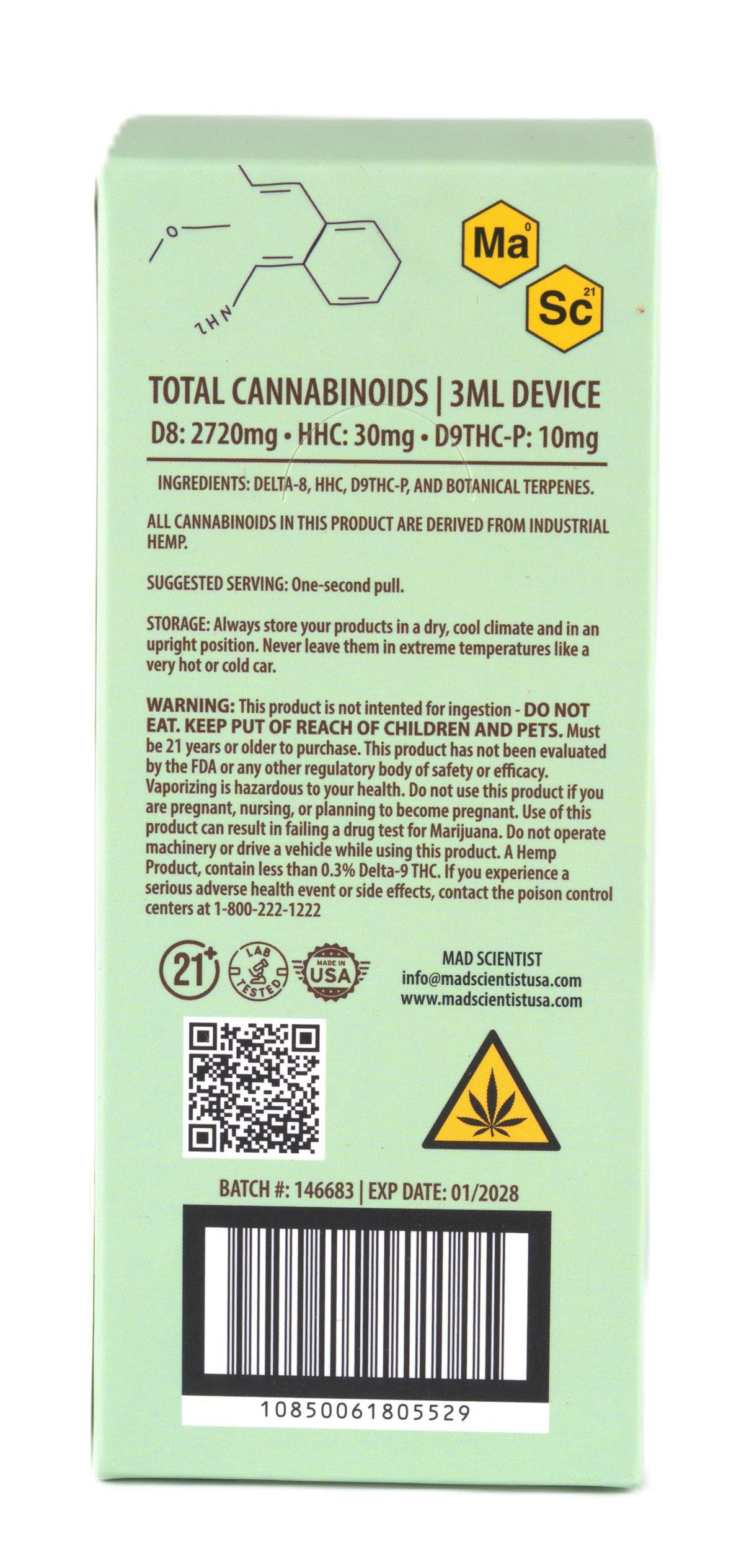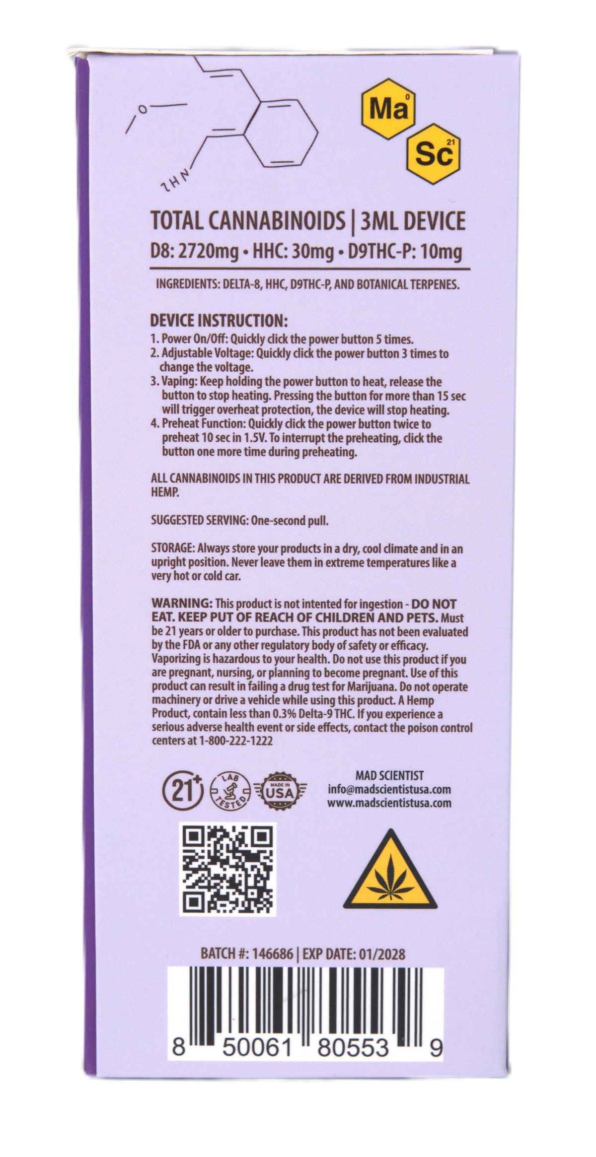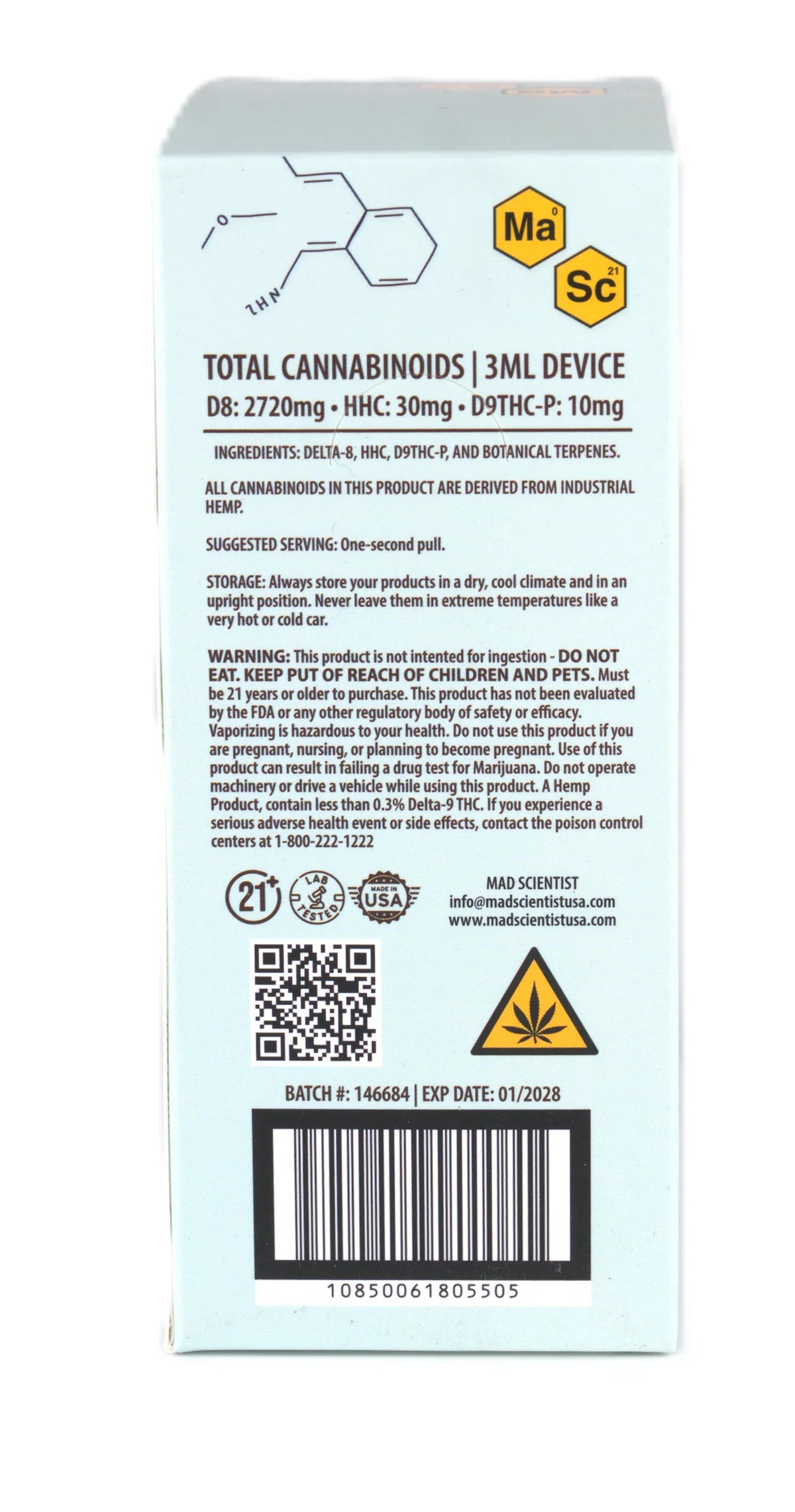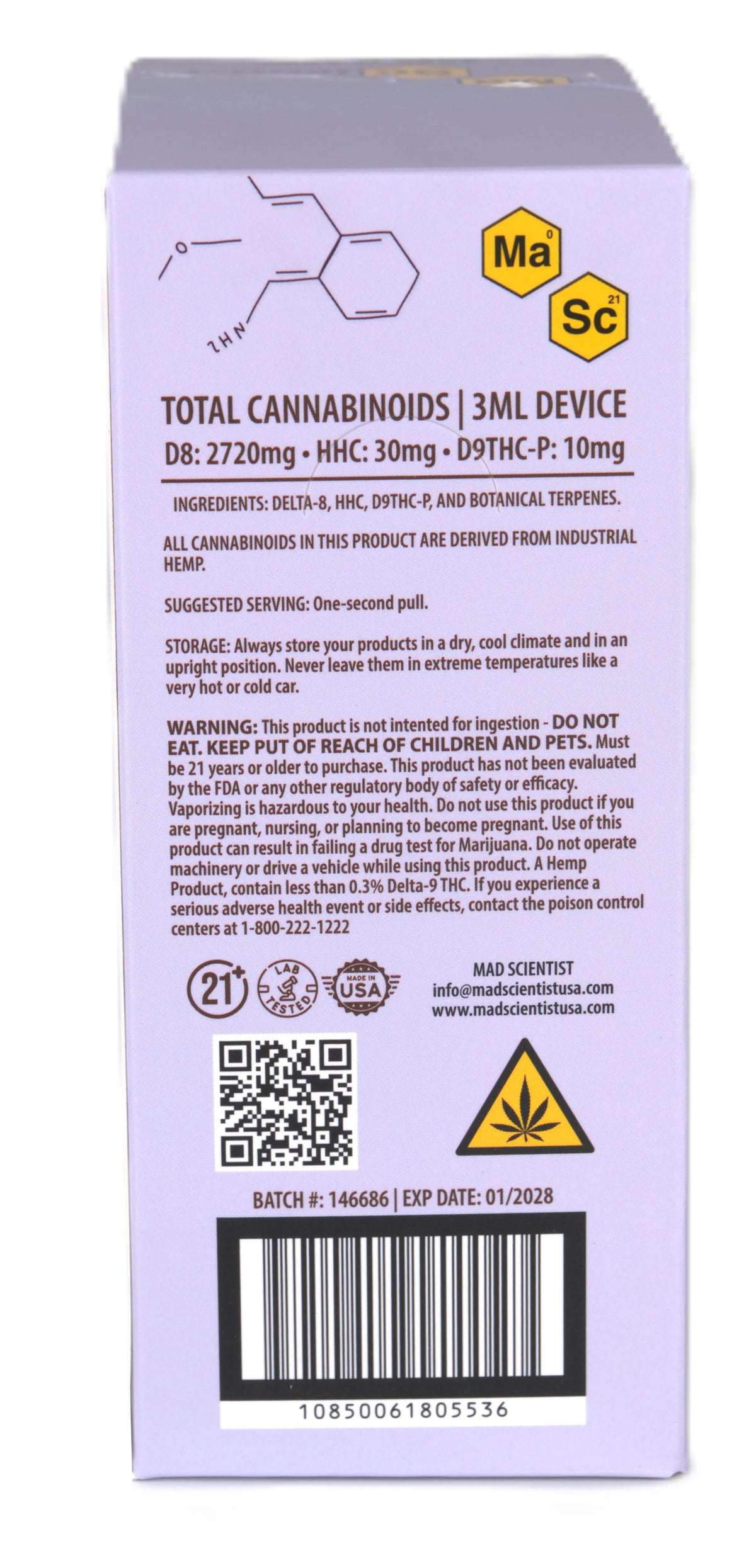 MAD SCIENTIST DISPOSABLE 3000MG - Blueberry Diesel / Hybrid / 5.25 x 2.37 x 5.56