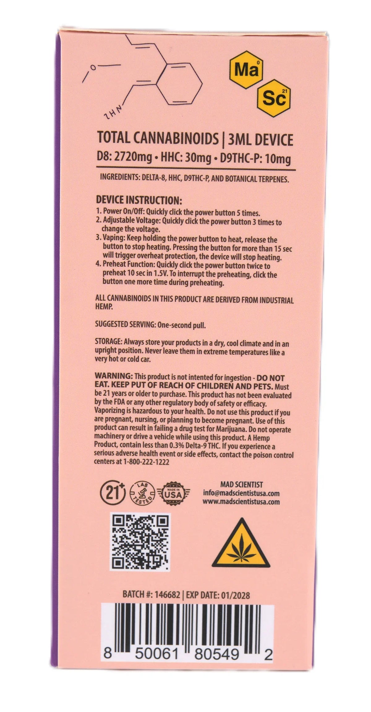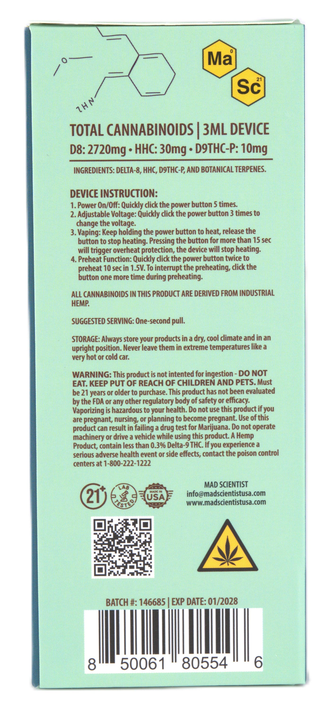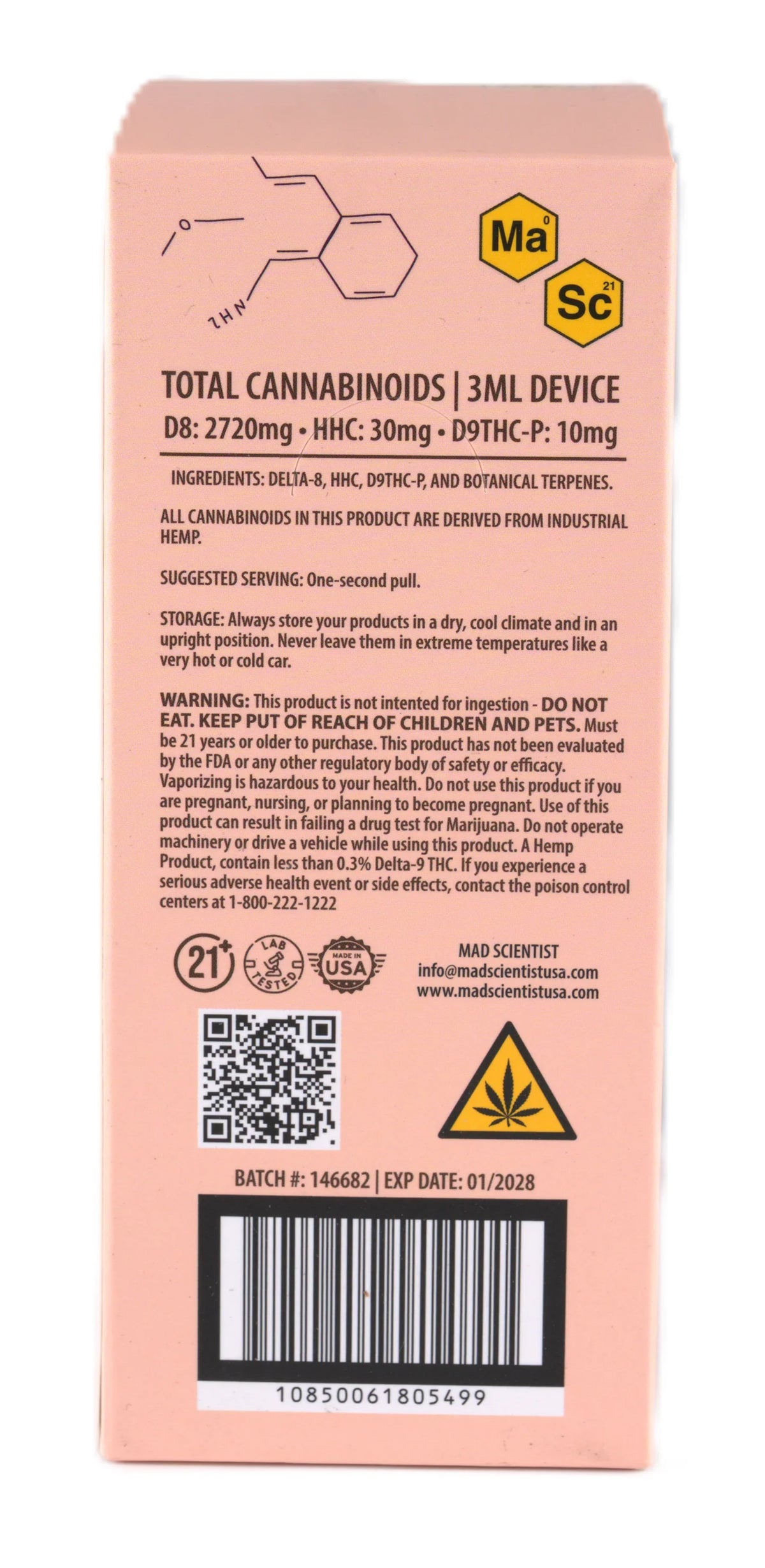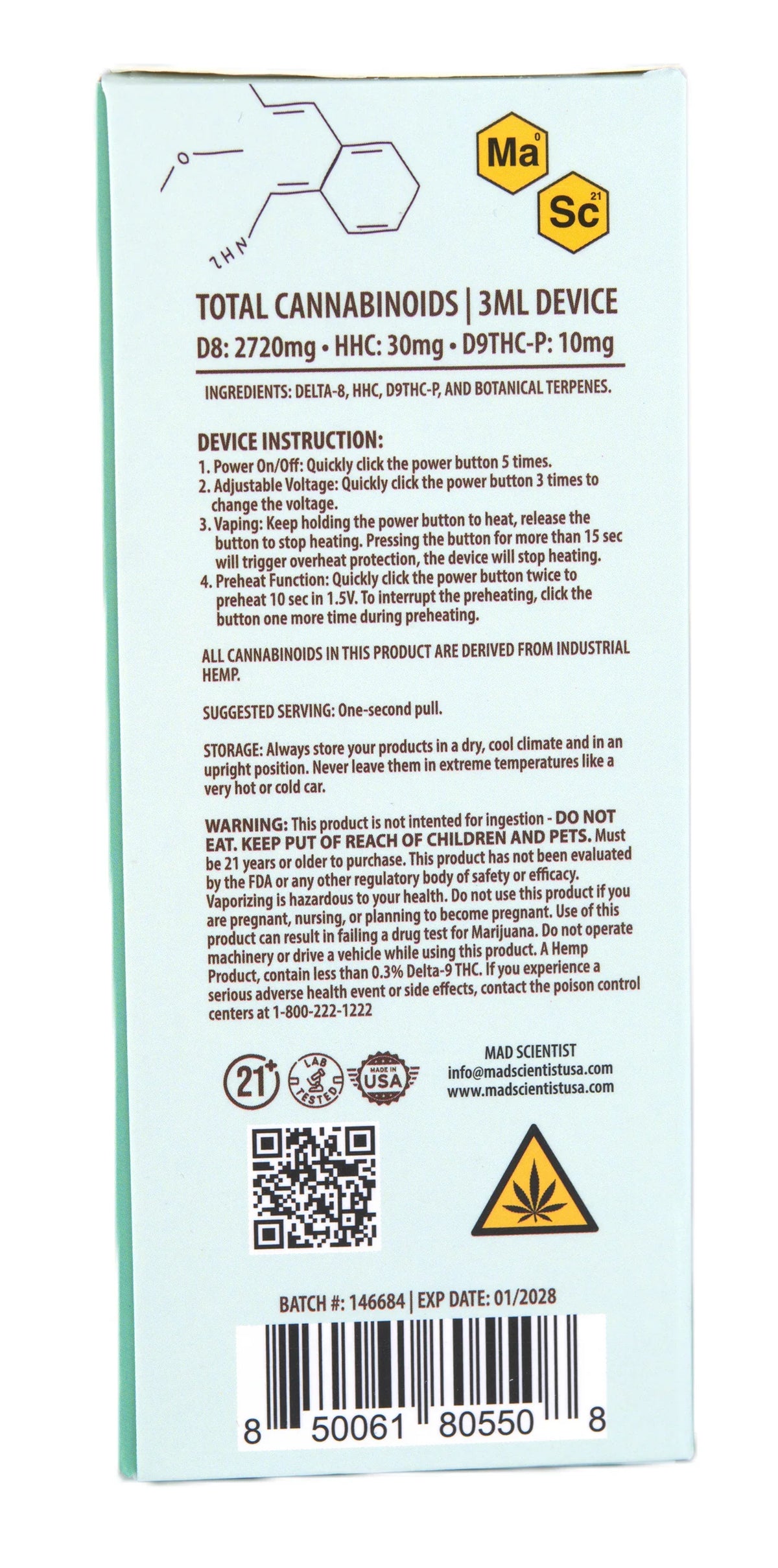 MAD SCIENTIST DISPOSABLE 3000MG - Blueberry Diesel / Hybrid / 5.25 x 2.37 x 5.56