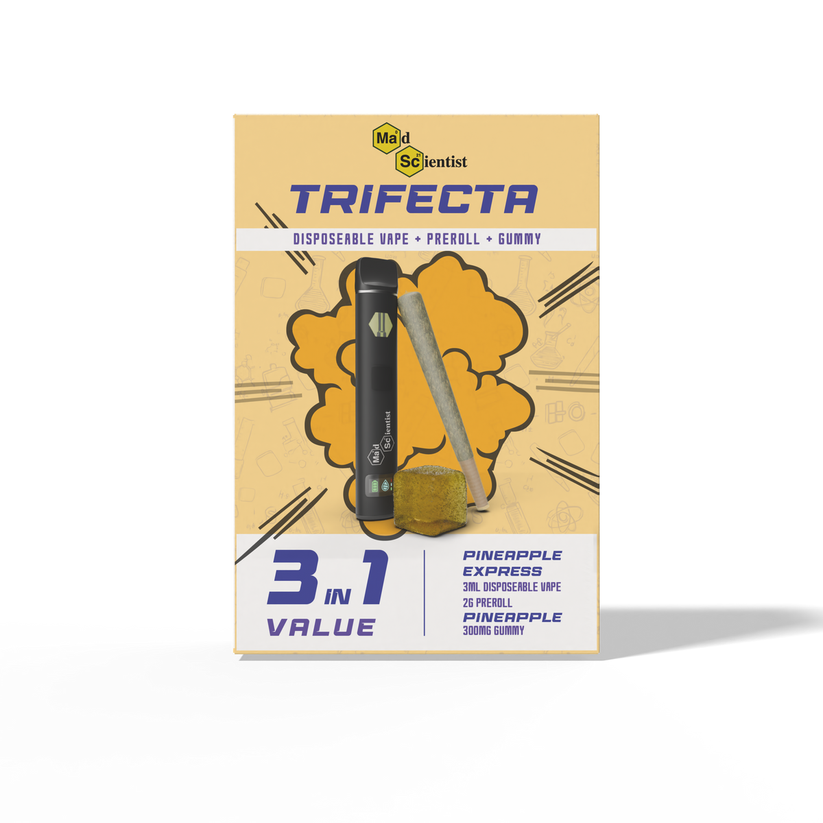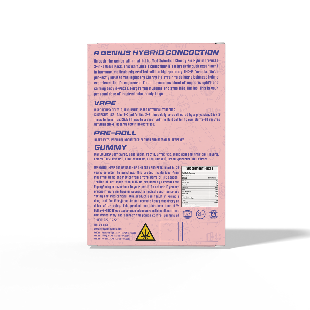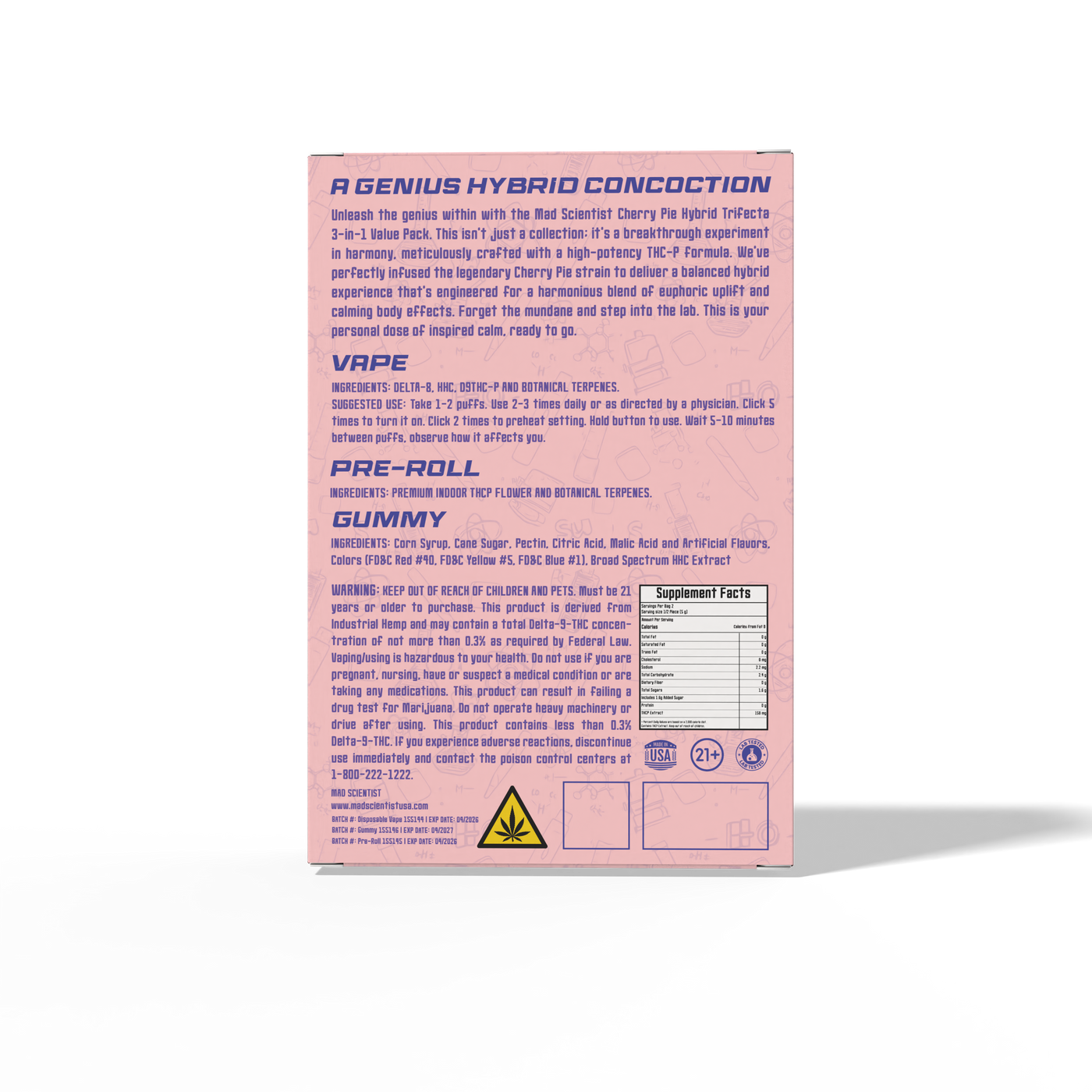 Get the ultimate balanced high with our Mad Scientist Cherry Pie Hybrid Trifecta. This 3-in-1 value pack is a potent formula for a harmonious and euphoric journey.