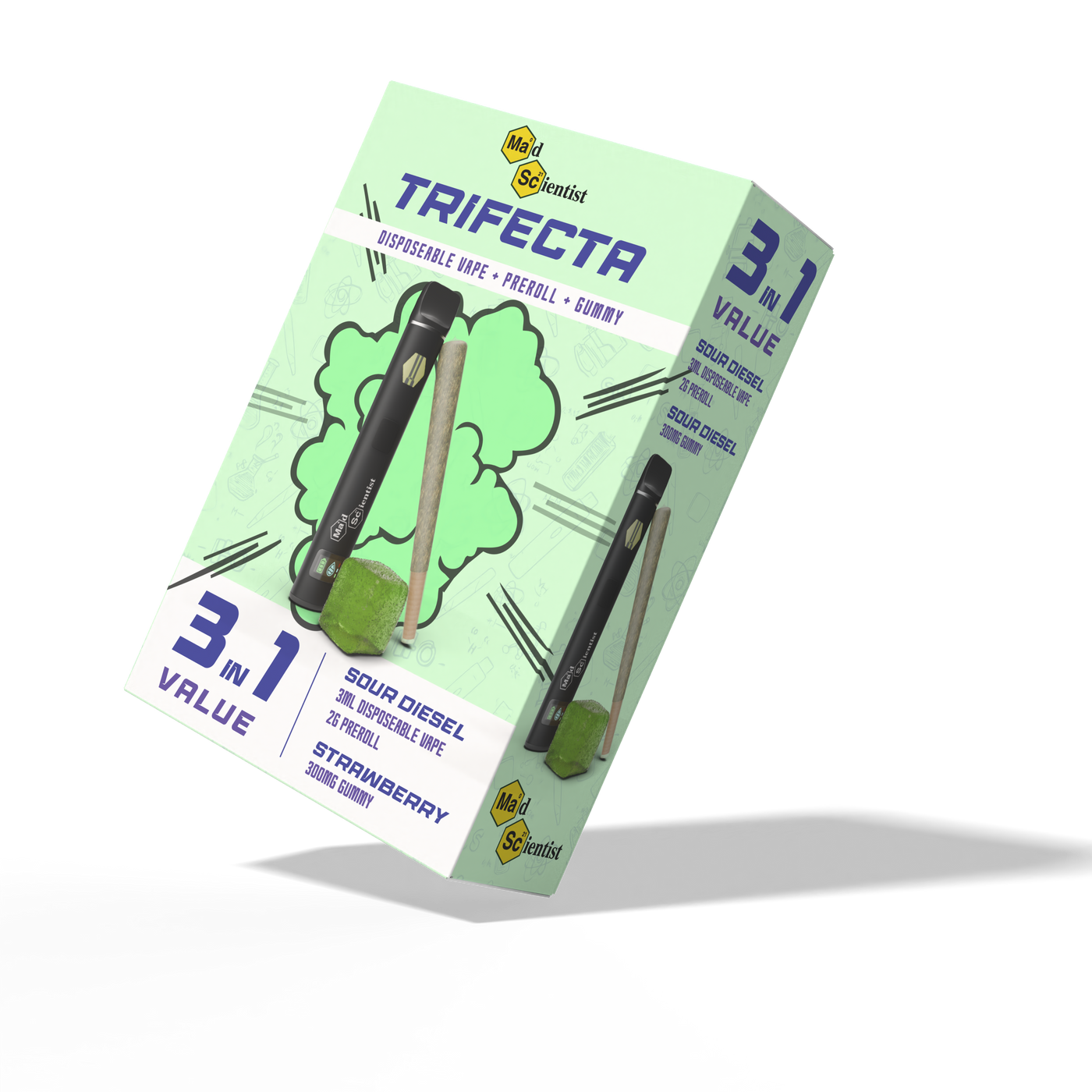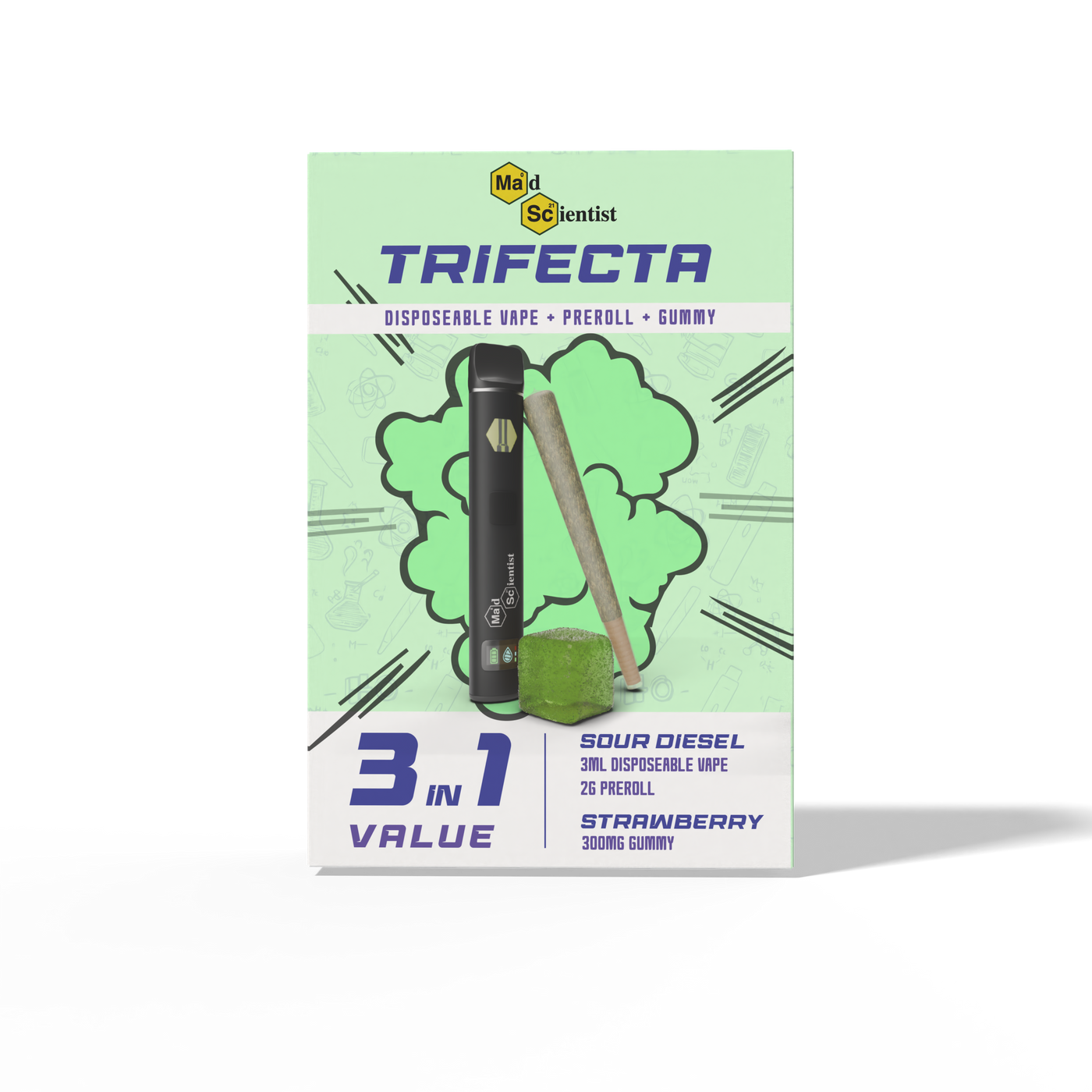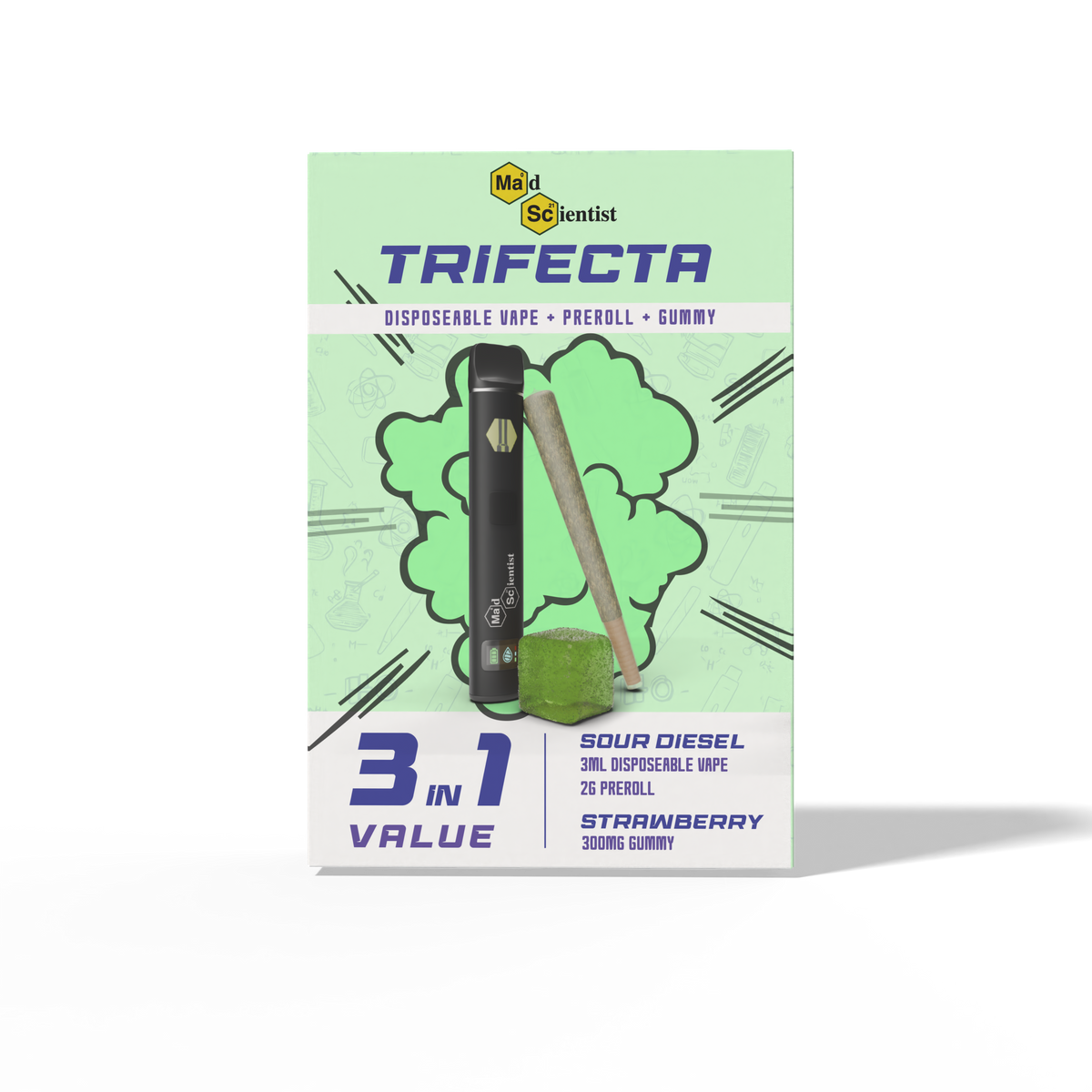 Get the ultimate balanced high with our Mad Scientist Cherry Pie Hybrid Trifecta. This 3-in-1 value pack is a potent formula for a harmonious and euphoric journey.